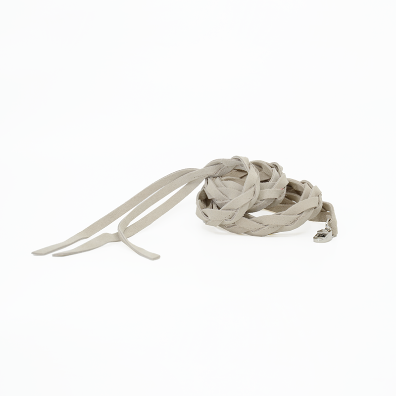 Dieser geflochtene Ledergürtel kann in der Taille oder Hüfte getragen werden und ist mit dem Karabiner beliebig verstellbar.