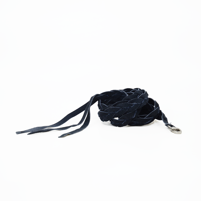 Dieser geflochtene Ledergürtel kann in der Taille oder Hüfte getragen werden und ist mit dem Karabiner beliebig verstellbar.