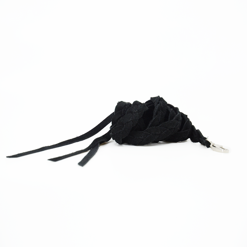 Dieser geflochtene Ledergürtel kann in der Taille oder Hüfte getragen werden und ist mit dem Karabiner beliebig verstellbar.