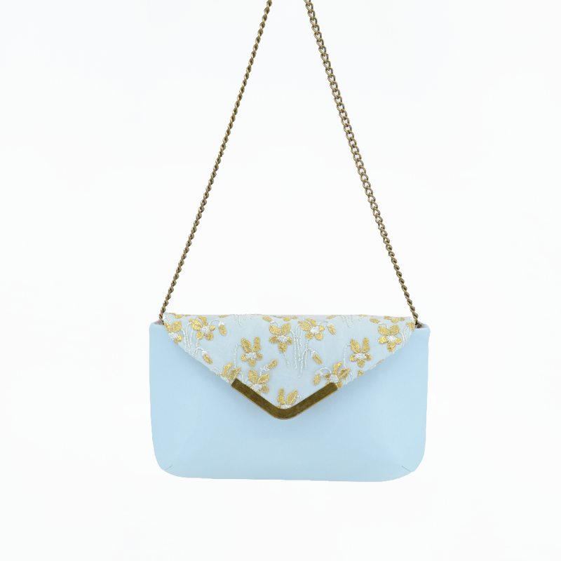 Edle Handtasche aus echtem Leder und hochwertiger St.Galler Stickerei von Jakob Schläpfer. Sie kann als Clutch oder Umhängetasche getragen werden.