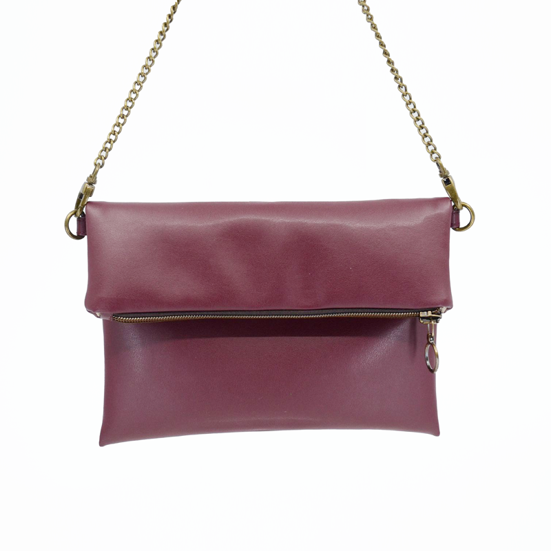 Edle Umhängetasche aus hochwertigem und innovativem Traubenleder-Leder VEGEA, und einem schönen metallic Reissverschluss. Das Futter aus beschichteter Baumwolle ist ideal um Verschmutzungen feucht auszureiben.