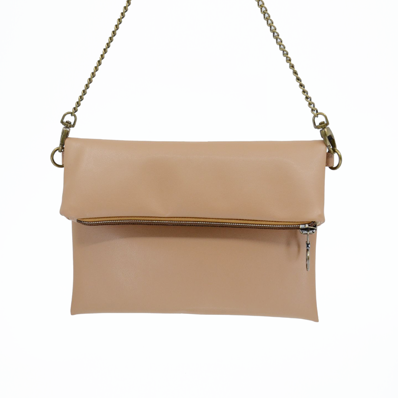 Edle Umhängetasche aus hochwertigem und innovativem Traubenleder-Leder VEGEA, und einem schönen metallic Reissverschluss. Das Futter aus beschichteter Baumwolle ist ideal um Verschmutzungen feucht auszureiben.