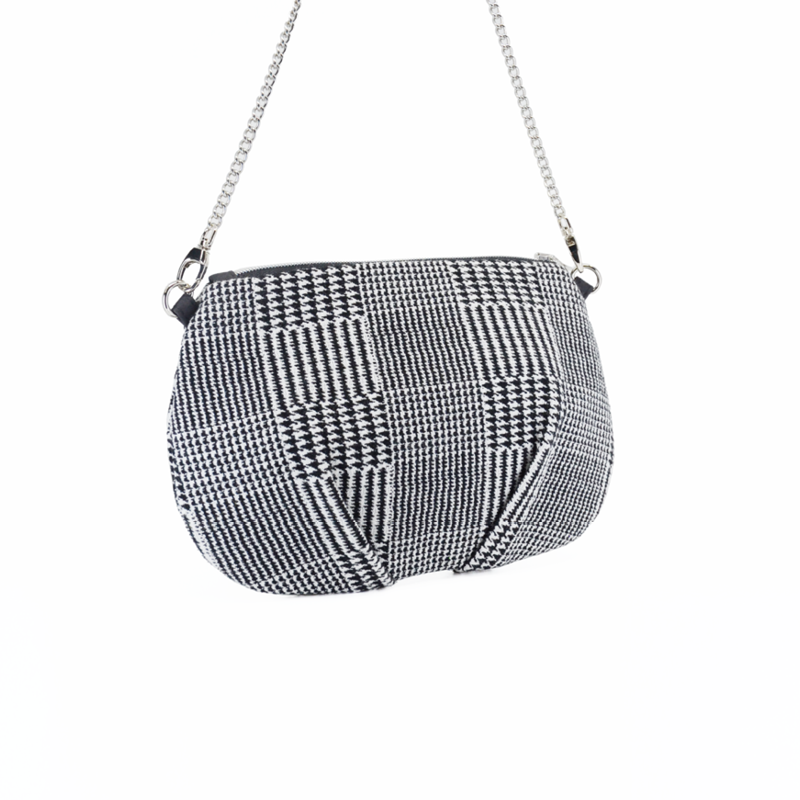 Edle Umhängetasche mit Falten, welche aus einem schönen Wollstoff mit Pied de Poule Musterung gefertigt wurde.