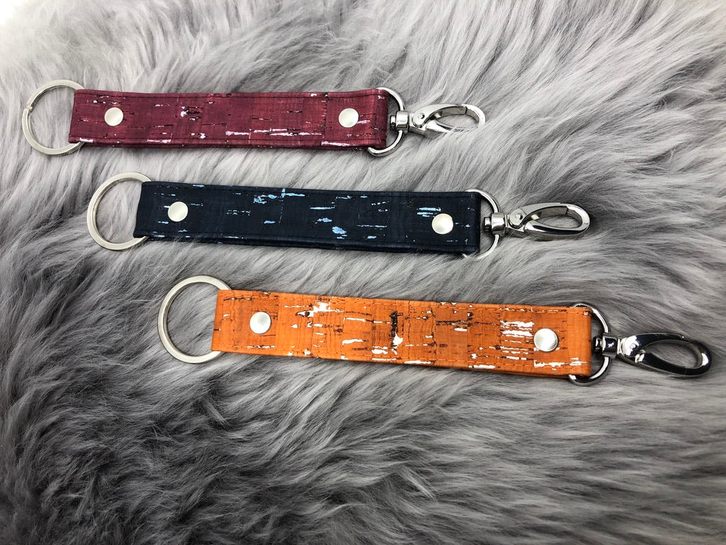 Edles Schlüsselband aus portugiesischem Kork, mit Karabinerhaken zum befestigen an Taschen und einem Schlüsselring. Ein tolles Geschenk oder Mitbringsel für jedermann.