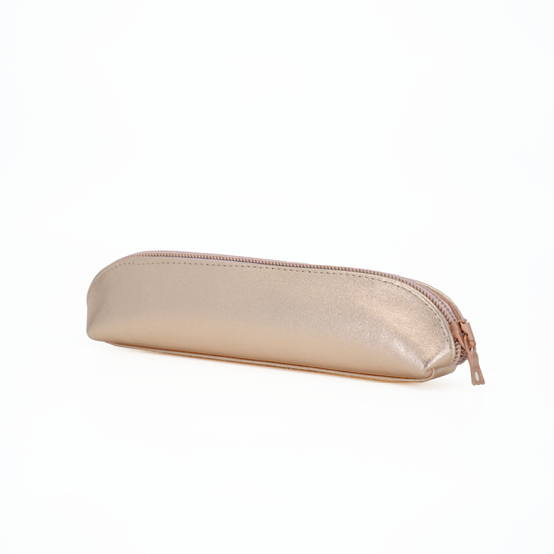 Edles Stifteetui aus hochwertigem metallic Leder, einem Reissverschluss und beschichteter Baumwolle als Futter.